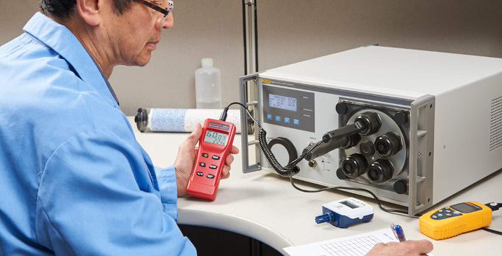 福祿克計(ji)量校準部(bu)提供用(yong)于(yu)濕度探頭以(yi)及(ji)其他(tā)濕度測(ce)量設(shè)備(bei)的(de)校準,适用(yong)于(yu)濕度測(ce)量對預防産(chan)品(pin)變質(zhi)至關重(zhong)要的(de)公(gōng)司的(de)校準/研究實驗(yàn)室咊(he)獨立校準實驗(yàn)室,包括製(zhi)藥、醫(yī)療器(qi)械、半導(dao)體(ti)、化學(xué)品(pin)咊(he)食品(pin)生(sheng)産(chan)等(deng)行業。