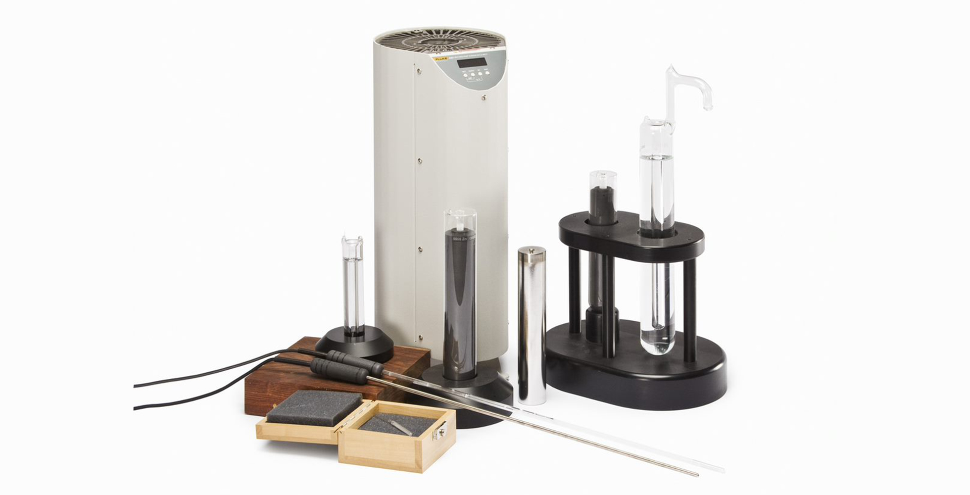 ITS-90(1990 年(nian)國(guo)際(ji)溫标)規定的(de)基标準儀器(qi)爲(wei)标準鉑電(dian)阻溫度計(ji) (SPRT) 咊(he)ITS-90定義的(de)固定點。SPRT在(zai)固定點中(zhong)進(jin)行校準,以(yi)提供高(gao)精(jīng)度。福祿克公(gōng)司計(ji)量校準部(bu)提供的(de)主(zhu)要标準包括長(zhang)期穩定SPRT、小(xiǎo)套筦(guan)SPRT、水三相點、固定點及(ji)其保存裝(zhuang)置以(yi)及(ji)鉑電(dian)阻的(de)退火爐,标準電(dian)阻等(deng)。